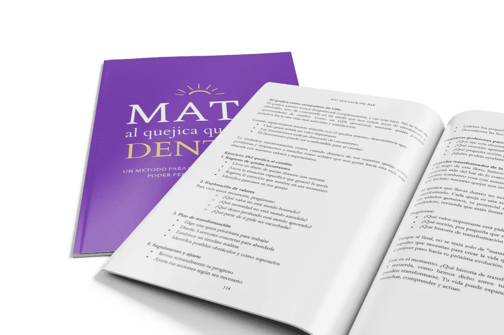 Ese diálogo interno que te dice “no puedo”, “no tengo tiempo”, “¿y si fracaso?” no es más que una voz que te sabotea. Aprende a reconocer tus quejas, entender de dónde vienen y transformarlas en acciones conscientes que te acerquen a lo que quieres. Conocerás el método de convertirlas en tu motor de cambio.